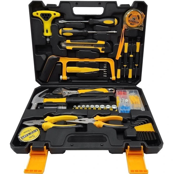 آچار آلن , آچار بکس , آچار فرانسه , انبر دم باریک , انبردست , پیچ , پیچ گوشتی , چسب , چکش , رولپلاک , فازمتر , کاتر , کیف ابزار , متر