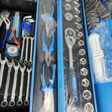 ۱۸ عدد بکس ۱/۲ _ سایز ۱۰ تا ۳۲ ۱۲ عدد بکس۱/۴ _ سایز۴ تا ۱۳ جغجغه ۱/۴ کمکی ۷ سانتی دسته پیچ گوشتی بکس جغجغه ۱/۲ کمک بکس ۱۰ سانتی دسته کشویی لغلغی ۵ عدد پیچ گوشتی دو سو و چهارسو مجموعه آچار از ۸ تا ۱۹ انبردست دمباریک کاتر با تیغ اضافه انبر کلاغی ۶ عدد بیت هولدر پیچ گوشتی آلن ۱ تا ۱۲ میلیمتر یک عدد متر ۵ متری انبرقفلی به همراه کیف حمل فولادی اتوماتیک